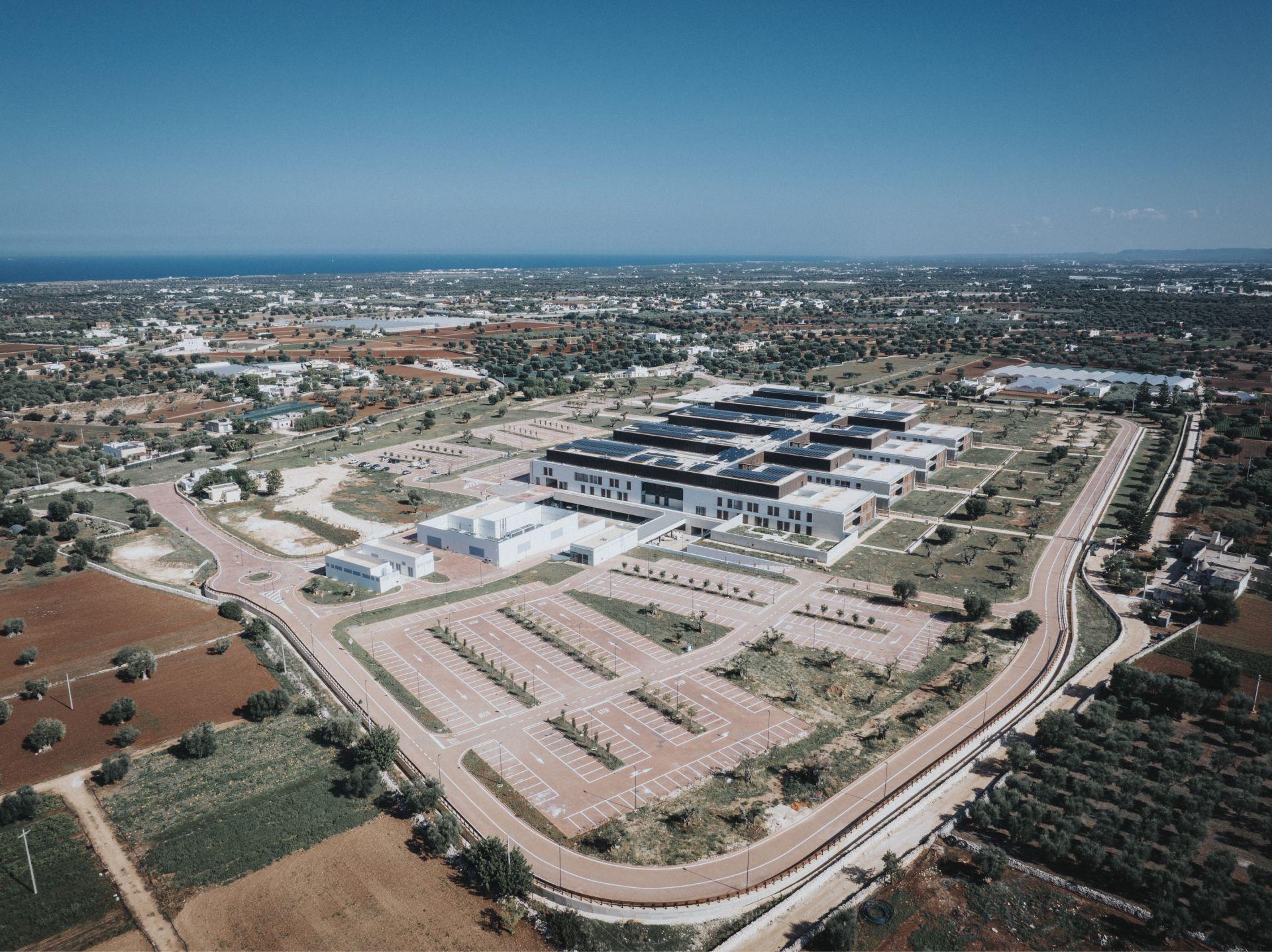 The New Hospital of South-East Bari of Monopoli-Fasano is an innovative, sustainable project that respects the territory's cultural heritage. It is a premium health care facility of territorial strategic value. The building contract foresaw building all the civil works and all the plants.