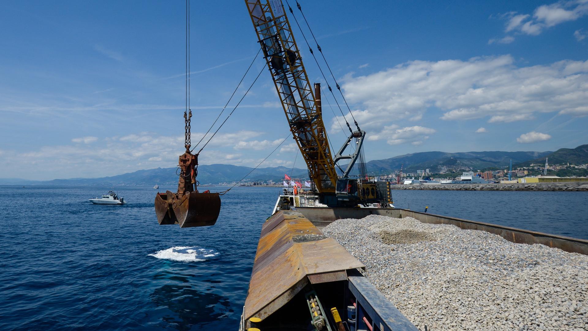 Nuova Diga Foranea di Genova, il viaggio della ghiaia da Cartagena a Genova