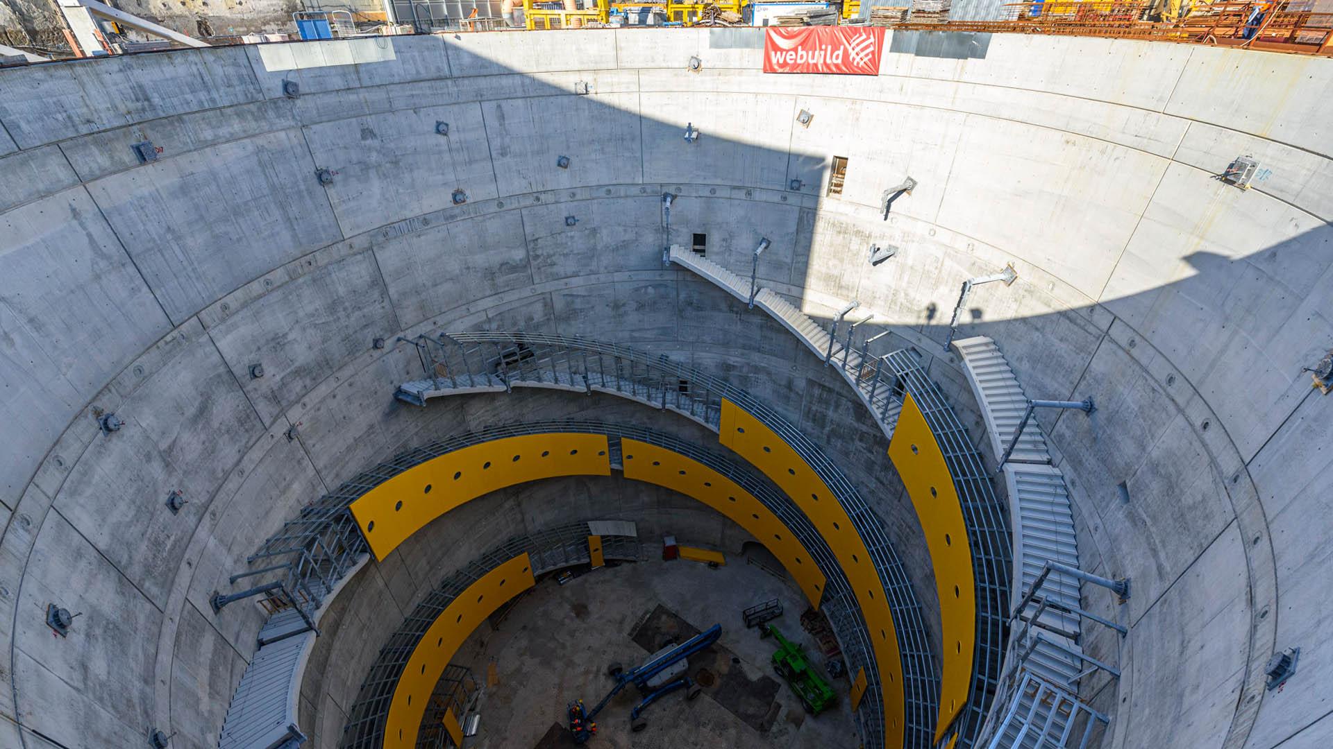 The station is being built by Webuild on behalf of the City of Naples, designed by the London-based firm RSHP, and will be operated by ANM Azienda Napoletana Mobilità. For its creation, the designers were inspired by St. Patrick's Well, the 54-meter-deep excavation built in Orvieto, Italy, in the 16th century. And to look at it from the back, the impression is of being in the middle of a propeller racing toward the sky, with the stairs moving sinuously upward, just like in Orvieto.