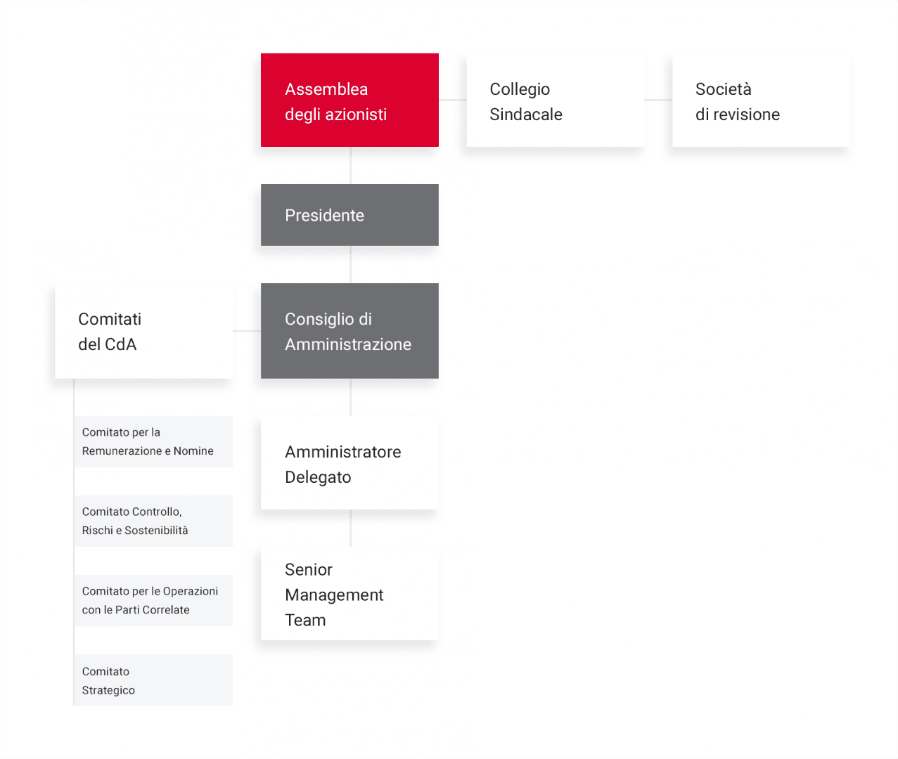 Webuild’s corporate governance system, based on the traditional administrative type model and in line with international best practices, is a key tool for achieving an efficient management of the Group, while providing an effective system for monitoring the Company’s activities, consistently with the objectives of creating value for the shareholders and protecting the interests of all stakeholders.