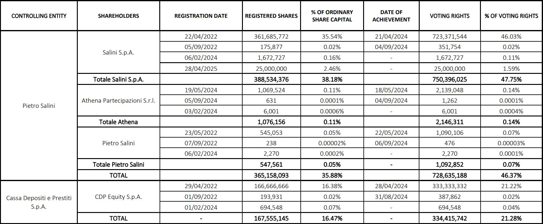 Milan – June 5, 2025 - Following the Press Release issued today on the change in share capital and the total amount of voting rights, please be advised that, given the small number of newly issued shares (n. 940 shares) and of shares cancelled from the increased vote (n. 2,592), there have been no significant changes in relation to the voting rights of the shareholders of Webuild S.p.A. with an interest above 3% of the total number of voting rights and registered in the List for the attribution of the increased voting right. The table below therefore shows no changes compared to the Press Release of 6 May 2025.