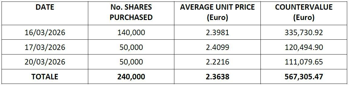 Below, attached, the details of the purchases made (through the intermediary Intermonte S.p.A.) and the operations carried out in the aforementioned period, in detail.