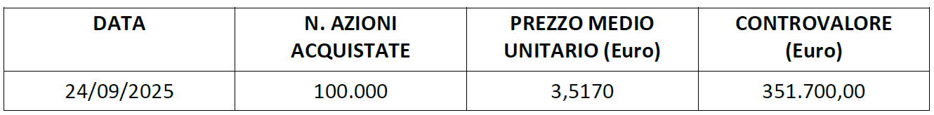 Alla luce di quanto sopra, il numero complessivo di azioni proprie detenute dalla Società alla data del 26 settembre 2025 è di n. 27.724.942 azioni ordinarie proprie, rappresentative del 2,724% del capitale sociale ordinario.