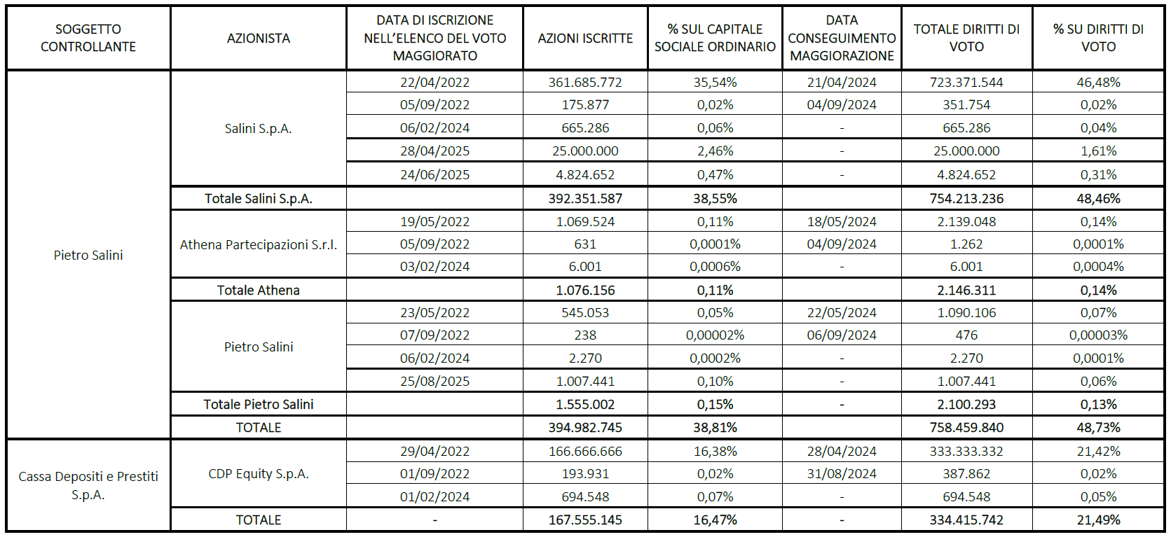 Milano, 7 novembre 2025 – Facendo seguito al Comunicato Stampa diffuso in data odierna sulla variazione dell’ammontare complessivo dei diritti di voto, viene di seguito riportato l’Elenco degli azionisti di Webuild S.p.A. - titolari di una partecipazione superiore al 3% del numero totale dei diritti di voto - che hanno richiesto e ottenuto l’iscrizione nell’Elenco per il conseguimento della maggiorazione del diritto di voto.