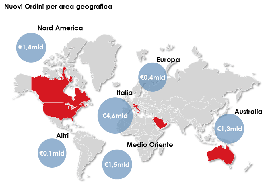 Di seguito la ripartizione geografica dei nuovi ordini e un elenco di alcuni dei principali contratti acquisiti: